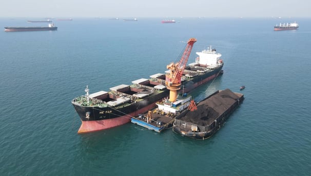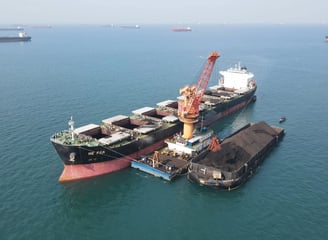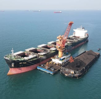 Expert STS operations for coal using floating cranes, optimizing cargo transfer between vessels.